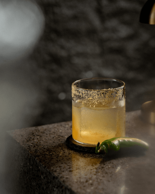 Rooted in Indonesia’s traditional jamu culture, Jatayu Jolt is a modern interpretation of something deeply familiar. Ginger and honey form its core, delivering warmth and comfort, while lemon adds brightness. Braulio amaro and blended Scotch introduce depth, with thyme adding a subtle herbal finish.